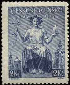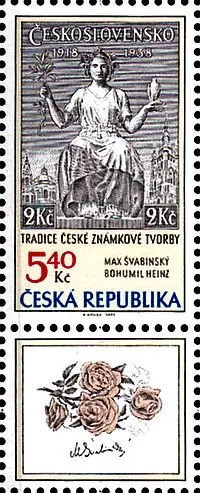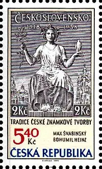 Znaczek Maxa Švabinskiego z 1938 r. (postać Republiki) (Michel 404-405)