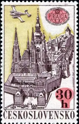 Lotniczy znaczek pocztowy zaprojektowany przez Jaroslava Lukavskiego w ramach emisji Światowa Wystawa Znaczków Pocztowych Praga 1968 (1967) (Michel 1738)